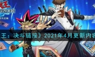 《游戏王:决斗链接》游戏中在2021年4月进行了一波更新,相信还有很多小伙伴不是很清楚2021年4月更新了什么。今天小编就给大家带来游戏王决斗链接决斗2021年4月更新内容介绍,感