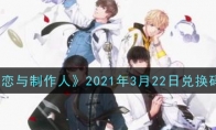 《恋与制作人》游戏中经常有各种小礼包发放,包含一些钻石、暴走卡等,2021年3月22日兑换码是什么?又在哪里领取呢?下面就是3DM小编给大家带来的《恋与制作人》2021年3月22日