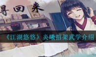 江湖悠悠炎曦招架怎么样?很多小伙伴对于这个武学不太了解,那么小编就给大家介绍一下,下面小编给大家带来《江湖悠悠》炎曦招架武学介绍,还不清楚这个武学的小伙伴赶紧来看看吧。>&g