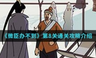 在微臣办不到手游中第8关怎么通关呢?游戏有20关,本关卡是第8关,皇上说自己冷贴在微臣身上,怎么样才能避免这样的亲近呢?想知道第8关通关攻略介绍。小编推荐:《微臣办不到》全关卡通关