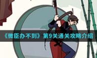 在微臣办不到手游中第9关怎么通关呢?游戏中有20关,本关卡是第9关,皇上晕倒了需要帮他带回去,怎么带回去呢?想知道第9关通关攻略的就跟随小编一起来看看吧。小编推荐:《微臣办不到》全