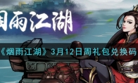 《烟雨江湖》手游不定时会更新些小礼包,3月12日周礼包兑换码是什么,在哪里兑换领取呢?下面给大家带来的是《烟雨江湖》3月12日周礼包兑换码及领取地址介绍,想要领取福利的小伙伴们速来