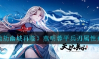 天地劫幽城再临燕明蓉兵刃属性怎么样?很多小伙伴对于这个角色的兵刃属性不太清楚,那么小编就给大家介绍一下,下面小编给大家带来《天地劫幽城再临》燕明蓉兵刃属性介绍,还不清楚的小伙伴赶紧