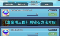 在富豪闯三国手游中怎么刷钻石呢?游戏中钻石很重要,例如像攒钻石和势力魂(势力魂一定要留给限定将),等限定池,抽限定,那么想知道具体刷钻石方法的就一起来看看吧。 刷钻石方法介绍: 1