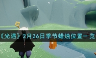 光遇手游非常有趣,但是在游戏中经常都会有很多特殊的任务,其中2月26日任务中季节蜡烛的位置有很多玩家不知道在哪,接下来小编就给大家带来了2月26日季节蜡烛位置介绍,快来一起看看吧!