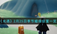 光遇手游非常有趣,但是在游戏中经常都会有很多特殊的任务,其中2月25日任务中季节蜡烛的位置有很多玩家不知道在哪,接下来小编就给大家带来了2月25日季节蜡烛位置介绍,快来一起看看吧!