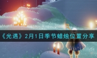 光遇手游非常有趣,但是在游戏中经常都会有很多特殊的任务,其中2月1日任务中季节蜡烛的位置有很多玩家不知道在哪,接下来小编就给大家带来了2月1日季节蜡烛位置介绍,快来一起看看吧!2月