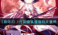 《崩坏3》手游不定时就会发放各种小礼包,通常是金币和体力药水!今日发放的是1月前瞻直播福利兑换码,该礼包在哪里领呢?下面是3DM小编给大家带来的《崩坏3》1月前瞻直播福利兑换码领取