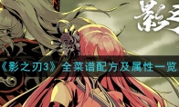 影之刃3游戏中玩家可以制作许多菜谱。相信有很多小伙伴不是很清楚烹饪菜谱都有哪些,接下来就让小编给大家带来《影之刃3》全菜谱配方及属性一览,感兴趣的小伙伴一起来看看吧。《影之刃3》全