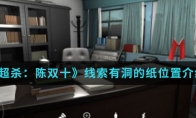 在超杀陈双十手游中线索有洞的纸在哪呢?这是孙美琪疑案第五季第四集超杀陈双十五级线索,需要我们找到有洞的纸,那么想知道具体位置的就一起来看看吧。小编推荐:《超杀陈双十》全线索位置介绍