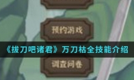 在拔刀吧诸君手游中万刀枯有什么技能呢?游戏中的刀剑有很多,万刀枯就是其中的一把刀,那么它有什么样的技能呢?想知道的就跟随小编一起来看看吧。万刀枯全技能介绍:直击:攻→破,7伤害弹刀