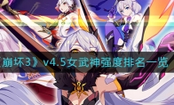 《崩坏3》在游戏内,每名角色都有着不同的强度,想必有很多小伙伴都比较好奇这些角色的排名强度情况吧,那么今天小编就给大家介绍一下崩坏3v4.5女武神强度排名一览,有需要的小伙伴不要错