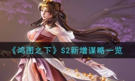 《鸿图之下》手游即将要开启S2赛季,届时会上线很多新的武将兵种等。相信还有很多小伙伴不是很清楚S2新增了什么谋略,下面小编给大家分享一下鸿图之下S2新增谋略一览,感兴趣的小伙伴们一
