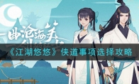 江湖悠悠游戏中有许多有趣的玩法,其中侠道事项就是一个,相信还有很多小伙伴不是很清楚侠道事项怎么选,下面小编就给大家带来江湖悠悠侠道事项选择攻略,感兴趣的小伙伴们一起来看看吧《江湖悠