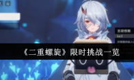 二重螺旋限时挑战有哪些?近期热度特别高的二重螺旋,以双主线故事剧情创作,大家在其中可同时扮演两种不同的主角,在布满荆棘的道路上,努力前行,为了生存需不断战斗,可从多维度武器中随意挑