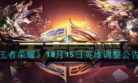 王者荣耀10月15日哪几个英雄调整?很多小伙伴有这样的疑问,这次更新对6位英雄进行了调整,一些热门英雄被削弱,还调整了3件装备,下面就跟小编一起看看具体调整哪些吧。 《王者荣耀》1