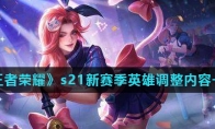 《王者荣耀》s21新赛季英雄调整了什么?游戏中迎来全新的S21赛季,很多玩家都在关注在新赛季中会加入哪些新英雄,当然还有哪些老英雄进行了改动呢,那么接下来小编为大家带来《王者荣耀》