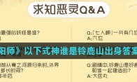 《阴阳师》以下式神谁是铃鹿山出身答案介绍