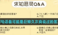 《阴阳师》以下那句话最可能是巨鲸久次良说过的?这是一道非常有趣的问题,可以看出游戏官方对于四周年庆用心了,那么小伙伴们知道这道问题的答案吗,接下来小编为大家带来《阴阳师》以下那句话