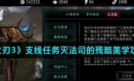 《影之刃3》游戏中支线任务灭法司的残酷美学怎么完成?游戏中出来主线任务之外,还有很多支线任务,而且有些支线任务还是非常重要的,其中灭法司的残酷美学任务很多小伙伴不知道怎么完成,那么