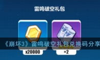 崩坏3雷鸣破空礼包兑换码是游戏中本周的每周礼包福利,此次礼包中玩家们是可以领取20000金币的,那么怎么领取呢?接下来小编就给大家带来了雷鸣破空礼包兑换码分享,一起来看看吧!雷鸣破