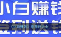 小白赚钱app是一款类似众人帮的手赚软件,软件中有各类任务,玩家们每天打开应用即可做兼职,那么小白赚钱推荐码是多少呢?接下来小编就给大家带来了推荐码大全,快来一起看看吧! 推荐码大