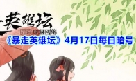 暴走英雄坛4月17日【看守血刀门浴血道的血刀门弟子是谁】暗号答案是什么?这是微信公众号中推出的题目,知道答案之后就可以在游戏中领取奖励了哦。下面给大家带来的就是《暴走英雄坛》4月1