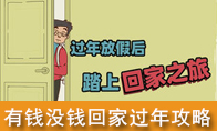 有钱没钱回家过年怎么通关?临近年关了,很多小伙伴都踏上了春运,回家过年去了,毕竟很多在外工作的也就这段时间还可以回家陪陪父母,回家无聊的时候也需要玩玩游戏打发时间了, 这款有钱没钱