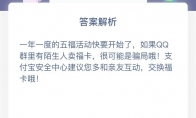 支付宝蚂蚁庄园小课堂每天的凌晨更新一道题目,答对后能领取小鸡饲料,小鸡宝宝考考你,以下选项中被称为“小鸡宝宝考考你,五福活动快开始了,如果QQ群里有陌生人卖福卡,要不要花钱买?”一