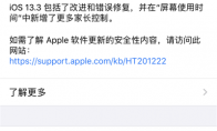 苹果手机在12月11日凌晨正式推送了iOS 13.3正式版更新,更新包大小为427.2MB,包含了改善和错误修补,并在“屏幕用到时间”中增加了更多家长控制。依据苹果发布的最新适用文