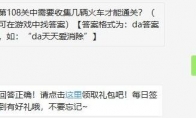 天天爱消除2019年11月4日每日一题题目是:【第108关中需要收集几辆火车才能通关】,大家知道今天的答案是什么吗?下面3DM手游网小编就给大家带来了天天爱消除今日每日一题答案,回