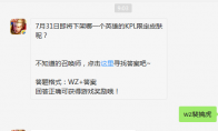 王者荣耀7月31日每日一题题目是:7月31日即将下架哪一个英雄的KPL限定皮肤呢? 各位玩家们应该都还不知道吧。下面就跟着小编一起来看看王者荣耀7月31日每日一题的答案吧