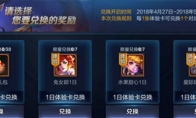 王者荣耀体验卡可以用来在王者荣耀商城中兑换期限英雄和皮肤,玩家只需打开兑换商城即可兑换自己需要的道具。 【体验卡兑换商店限时开启】 活动时间:4月27日~5月2日活动地址:游戏中-