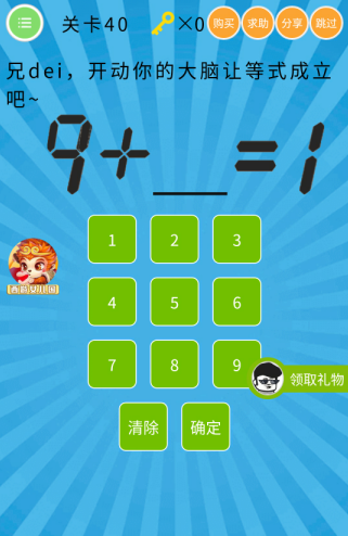 微信上的史上最囧挑战第六季是一款解谜游戏,玩家需要完成关卡的题目方能通过关卡。在该游戏的第40关,它给出的题目是:兄dei,开动你的大脑让等式成立吧~。下面是这一关的攻略。史上最囧