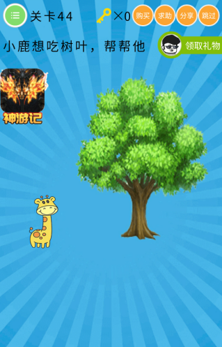 微信上的史上最囧挑战第六季是一款解谜游戏,玩家需要完成关卡的题目方能通过关卡。在该游戏的第44关,它给出的题目是:小鹿想吃树叶,帮帮他。下面是这一关的攻略。史上最囧挑战第六季第44