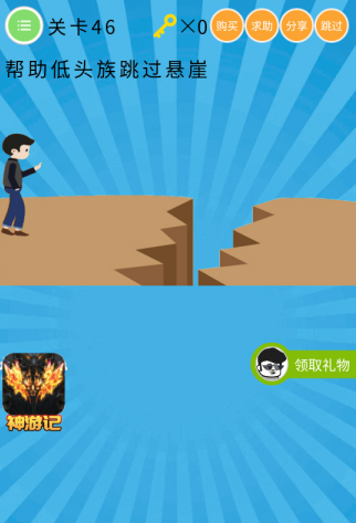 微信上的史上最囧挑战第六季是一款解谜游戏,玩家需要完成关卡的题目方能通过关卡。在该游戏的第46关,它给出的题目是:帮助低头族跳过悬崖。下面是这一关的攻略。史上最囧挑战第六季第46关