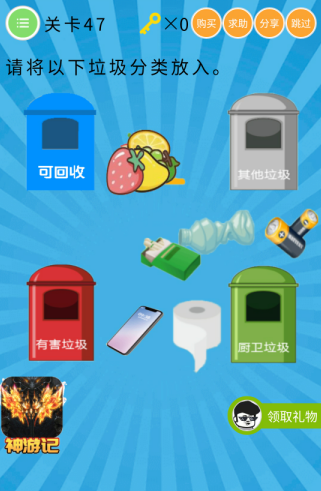 微信上的史上最囧挑战第六季是一款解谜游戏,玩家需要完成关卡的题目方能通过关卡。在该游戏的第47关,它给出的题目是:请将以下垃圾分类放入。下面是这一关的攻略。史上最囧挑战第六季第47