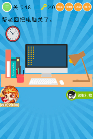 微信上的史上最囧挑战第六季是一款解谜游戏,玩家需要完成关卡的题目方能通过关卡。在该游戏的第48关,它给出的题目是:帮老囧把电脑关了。下面是这一关的攻略。史上最囧挑战第六季第48关攻