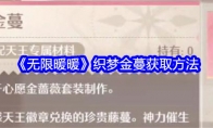 无限暖暖目前版本剧情停在了制作金蔷薇套,其中有一个材料是织梦金蔓,这是用性感天王徽章兑换的珍贵藤蔓。神力催生的细蔓能够随意塑形,如同在梦中自由地裁剪出理想的模样。下面是3DM小编给