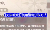 无限暖暖美甲金龟可用于设计图制作。趴在祈愿树林枯木上的昆虫。森林的美甲师有染色诀窍,用它的腹部染成的布匹鲜艳闪亮不褪色。下面给大家带来了《无限暖暖》美甲金龟获取方法分享,一起来看看