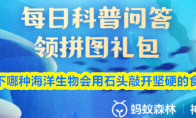 以下哪种海洋生物会用石头敲开坚硬的食物?【神奇海洋】11月3日新题目已开答!正确答案现已公布,点击领取拼图,一起为修复海洋生态贡献力量!今日正确答案是:【海獭】。海獭主要吃海胆、蛤