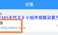 在2345天气王中设置小组件提醒,可先打开应用,点击右下方“工具”选项,再点击右上角“设置”,接着进入“小组件设置”,根据需求选择如“多日天气”等类型小组件并点击“立即添加”,添加