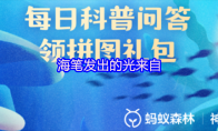 海笔发出的光来自?支付宝蚂蚁森林神奇海洋2025年8月19日问题已经更新,今日正确答案是:【生物荧光】。海笔发出的光属于生物荧光。当遭遇威胁时,它们体内的“光电池”系统瞬间启动,释