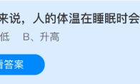 通常来说,人的体温在睡眠时会?这是支付宝蚂蚁庄园小鸡答题8月18日题目,支付宝小鸡答题是大家非常喜欢的活动,大家获取饲料就可以喂养小鸡领取更多的蛋去帮助更多的人了!今日正确答案是【