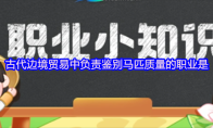 古代边境贸易中负责鉴别马匹质量的职业是?这是支付宝蚂蚁新村2025年8月18日题目,每天在蚂蚁新村答题,可以提高木兰币的产速,帮助小镇建设。点击正确答案,会获得“产速+3/时”更多