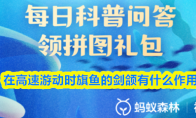 在高速游动时,旗鱼的剑颌有什么作用?【神奇海洋】10月31日新题目已开答!正确答案现已公布,点击领取拼图,一起为修复海洋生态贡献力量!今日正确答案是:【减少水流阻力】。旗鱼在前进过