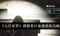 七日世界消脂果汁食谱怎么获取?在七日世界游戏中,有着很多的玩家都不知道消脂果汁食谱要怎么获得,其实想要获得这个食谱只要去到指定的位置,然后进入到房子中,在房子里面的桌子上即可拾取到