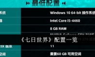 七日世界要什么配置?网易发行的全新身存建造游戏七日世界已于今早5:00正式开服。大家都知道配置对于一款游戏来说十分重要,很多观望的小伙伴还在考虑配置问题,今天小编给大家找来了七日世
