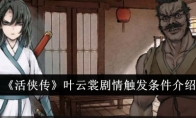 活侠传叶云裳剧情触发条件是什么?叶云裳是游戏中的一个女主角色,玩家达到指定条件之后即可触发与她相关的剧情,下面为大家分享一下叶云裳剧情触发条件,想要了解的玩家可以参考以下的图文攻略