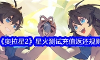 《奥拉星2》「 星火测试」为限时注册计费删档测试,在测试期间的所有充值内容,将在游戏正式上线后按照「返还规则」进行返还。具体返利规则如下,请仔细阅读《奥拉星2》星火测试充值返还规则